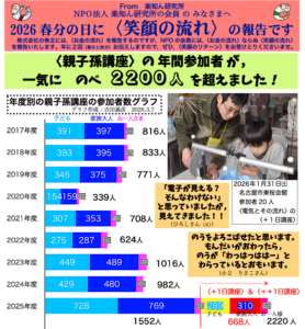 NPO法人 楽知ん研究所 新着情報 過去投稿はこちら 〈笑顔の流れ〉ジャンボハガキ2026春を発行しました 2026年3月23日 / 報告 【新刊情報】『ものの見方考え方WORKS(ワークス)3』 2026年3月9日 / 新着情報 「ちょこっと総合読本大賞2025」発表! 2026年1月3日 / 報告 親子孫で〈たのしい仮説実験〉講座 キックオフ会2026を開催します! 2025年12月16日 / イベント案内 はじめての方へ 〇ミッション これから開催する講座 各地で講座を開催中! 北海道(デモじぃハウス, 噴火湾)・青森(あおもり)・宮城(みやぎ) 新潟(新潟, 中越, 上越)・福井/ 石川(北陸) 群馬(ぐんま)・茨城(城里)・埼玉(らぼラボ)・千葉(ちば, 千葉かずさ) 東京(立川・大田区)・神奈川(藤沢, さがみはら)・山梨(富士五湖) 長野(上田)・愛知/ 三重(ころりんハウス, はんだ) 京都/ 大阪(かんさい)・鳥取(とっとり)・山口(うべ) 長崎(ながさき)・熊本(くまもと)・鹿児島(きりしま) 全国の講座スケジュールはこちら