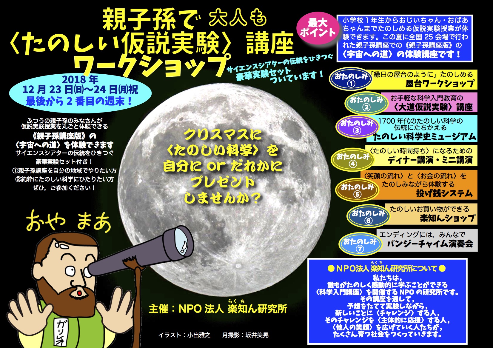 今年も恒例の,年末やや最後の日祝(12月23日~24日)に「親子孫で〈たのしい仮説実験〉講座ワークショップ(親子孫講座ワークショップ)」を開催します!