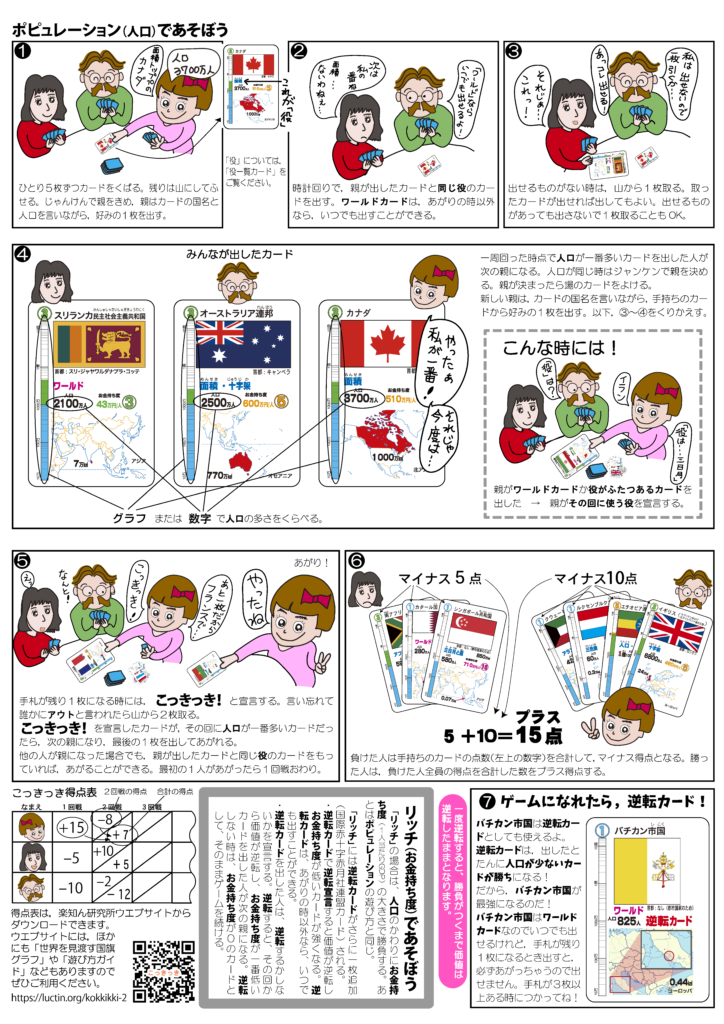 世界の国旗カードゲーム「こっきっき」第2版 「こっきっき」遊び方ガイド ↑ クリックすると,印刷用PDFファイルをダウンロードできます。 「ポピュレーション」,「リッチ」 国旗一覧 ↑ クリックすると,印刷用PDFファイルをダウンロードできます。 「こっきっき」得点表 ↑ クリックすると,印刷用PDFファイルをダウンロードできます。